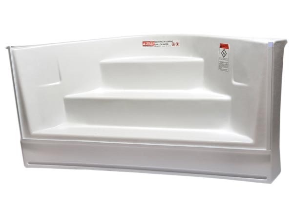 The Saratoga Step is the highest quality pool step available to the industry. We start with a thermoplastic sheet material of ABS with a pure white cap to form a one-piece integral step. This is a technologically advanced material designed to have excellent weather-ability and chemical stability as well as resistance level to acids, alkalis, and salts. It is also specially formulated with ultraviolet inhibitors to ensure long-term durability.